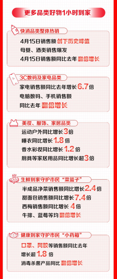 全品类好物小时达,手机、数码、母婴同比翻倍以上增长
