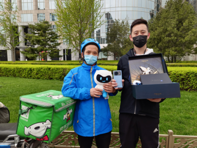 (达达快送骑士将415大促手机订单送达用户手中)